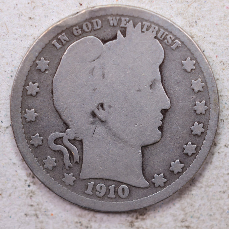 1910 Barber Silver Quarter, Good Details, Circulated Coin, Store #1439