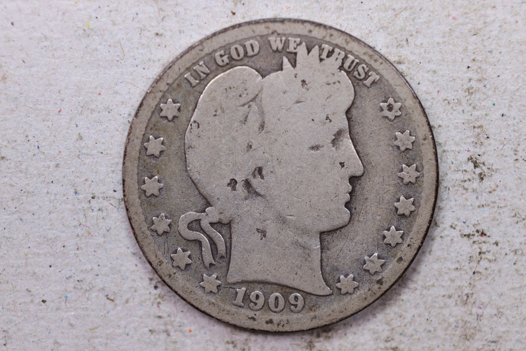 1909-S Barber Silver Quarter., Very Good., Circulated Coin., Store #1438