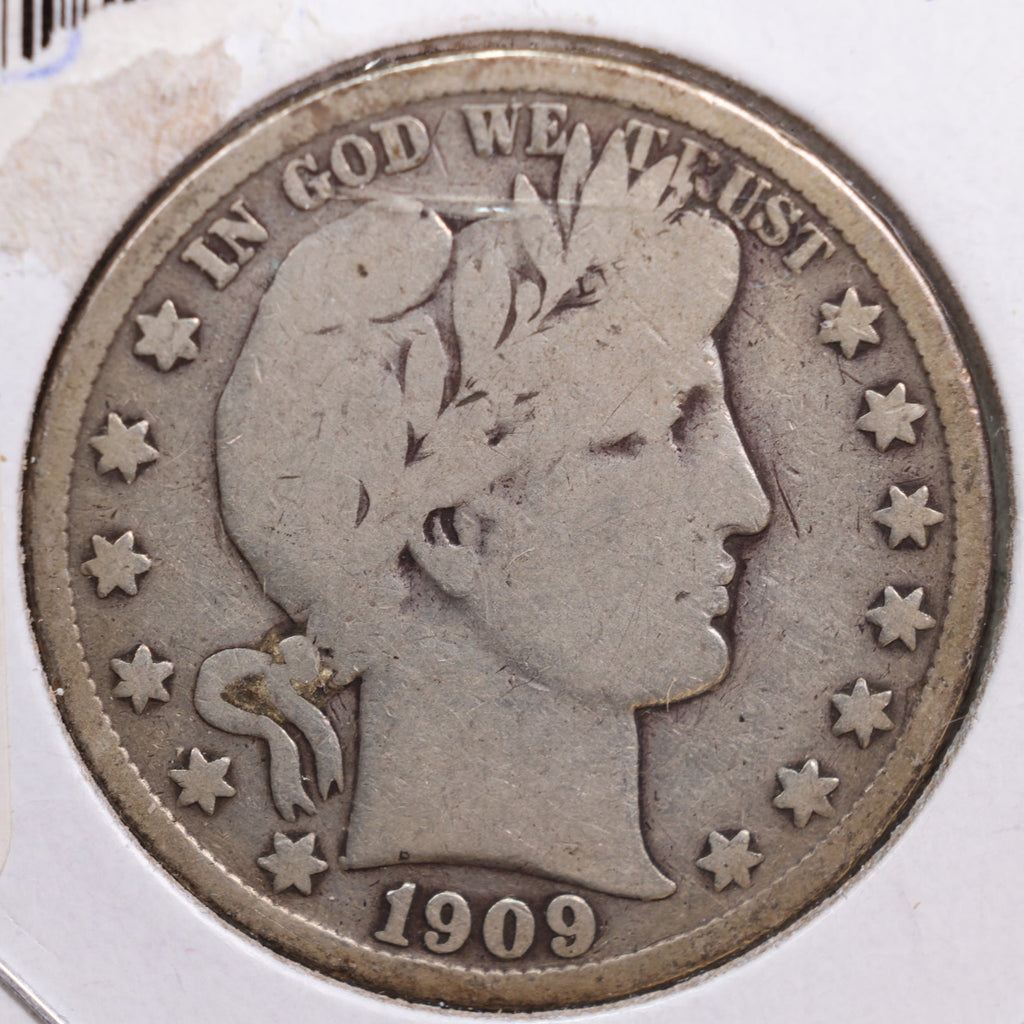 1909-S Barber Half Dollar, Very Good+ Circulated Coin, Store #HR0587