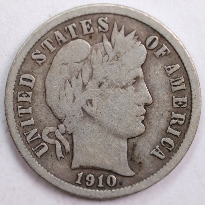 1910 Barber Silver Dime, Very Good+ Circulated Coin, Store #DE0433
