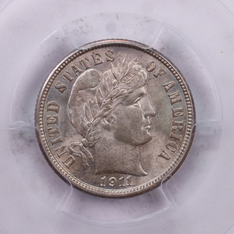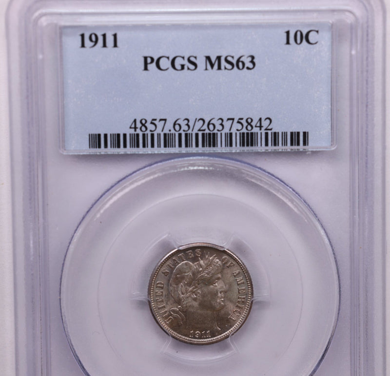 1911 10 Cent., Barber Silver Dime., PCGS Certified MS-63., Store #1720