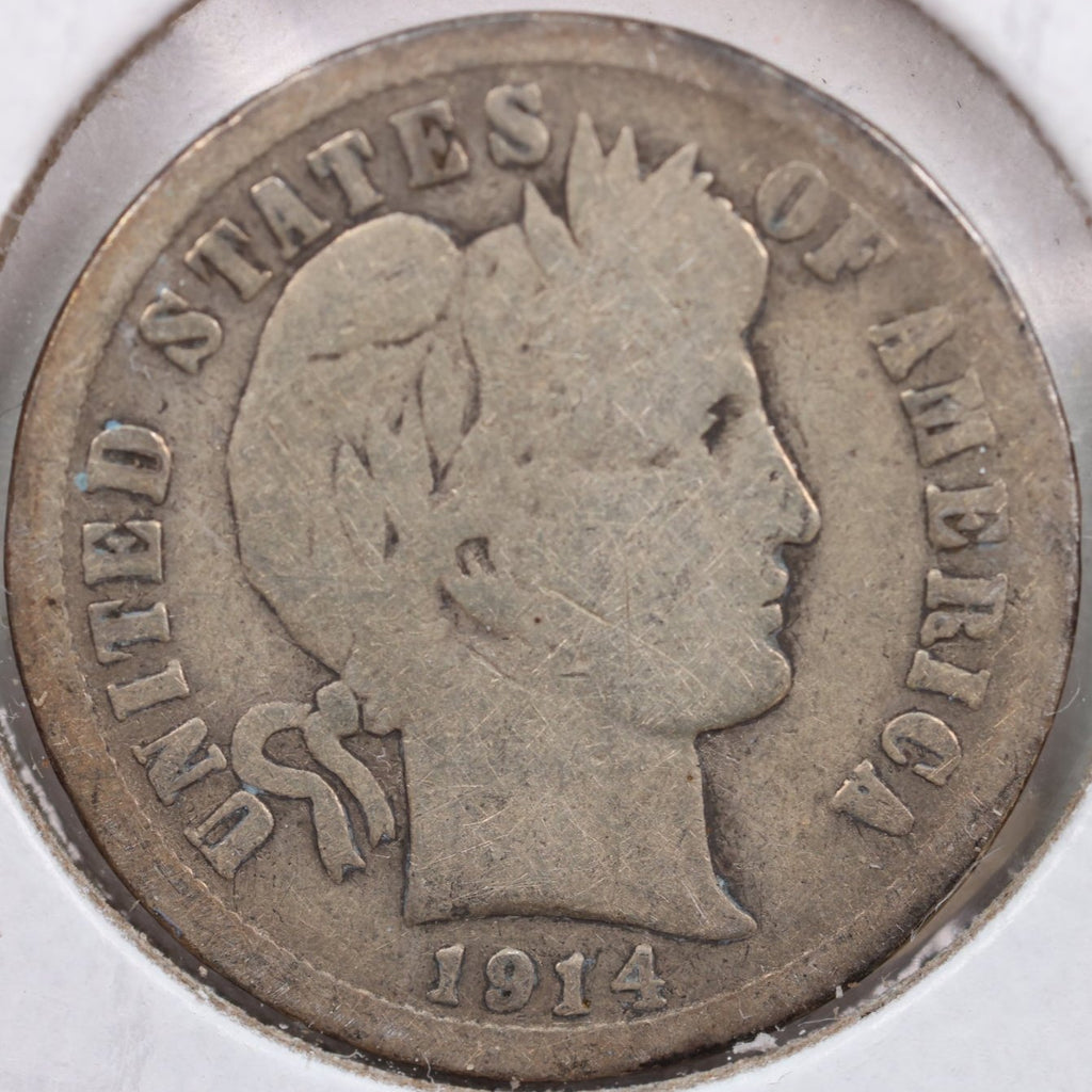 1914-D Barber Silver Dime, Very Good Circulated Coin, Store Sale #d914D01