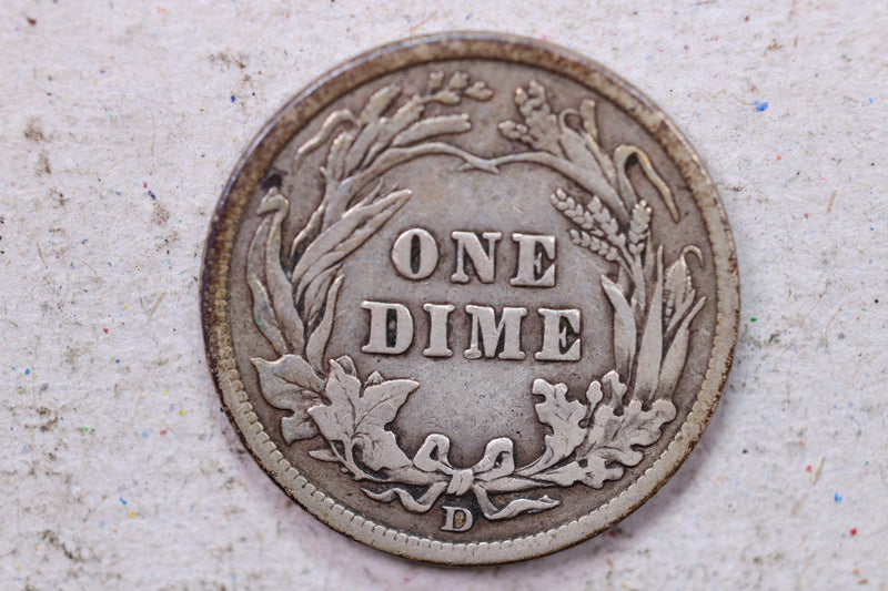 1911-D Barber Silver Dime., Very Fine+., Circulated Coin., Store #1319