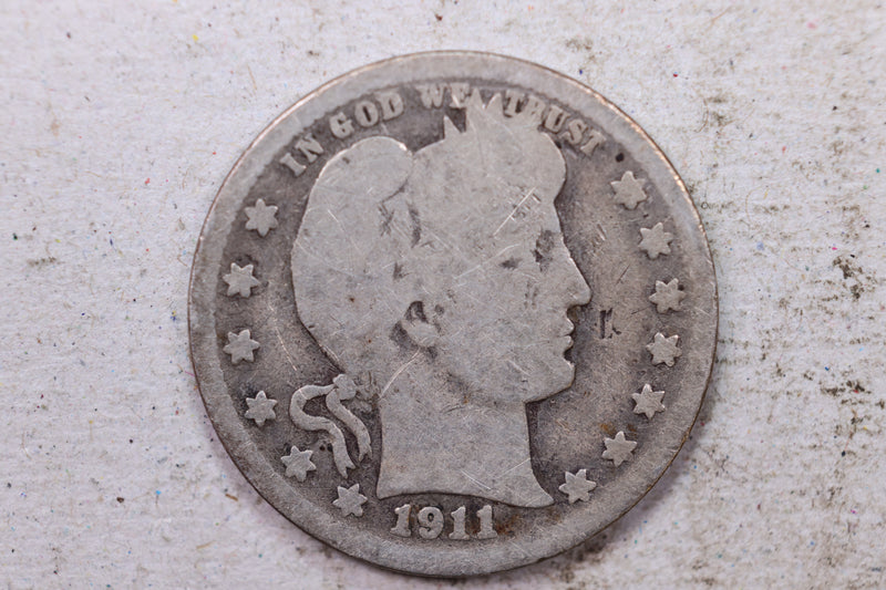 1911-D Barber Silver Quarter., Good., Circulated Coin., Store #1445
