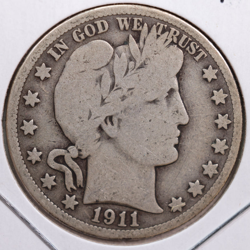 1911 Barber Half Dollar, Very Good Circulated Coin, Store #HR0576