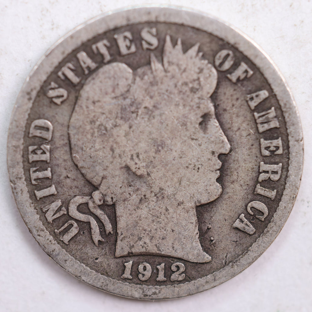 1912 Barber Silver Dime, Good Circulated Coin, Store #DE0420