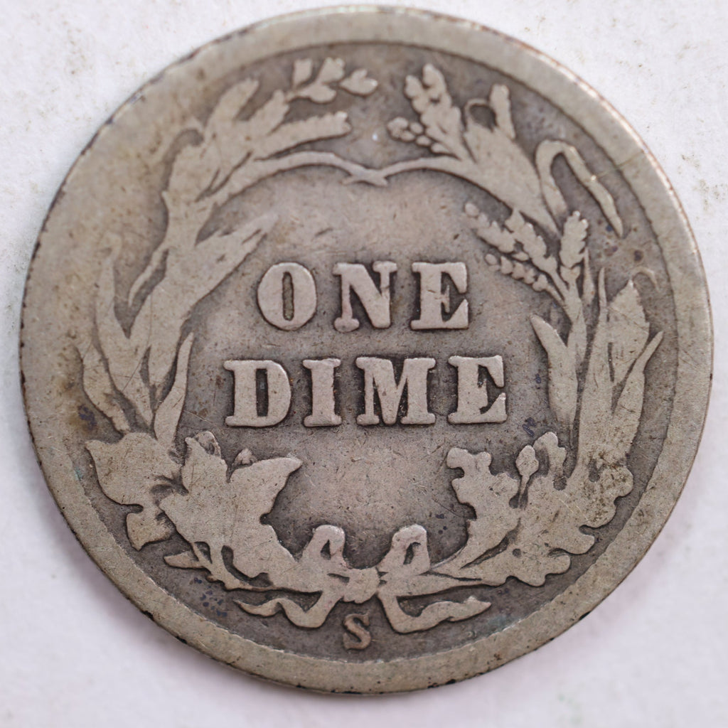 1911-S Barber Silver Dime, Good Circulated Coin, Store #DE0424