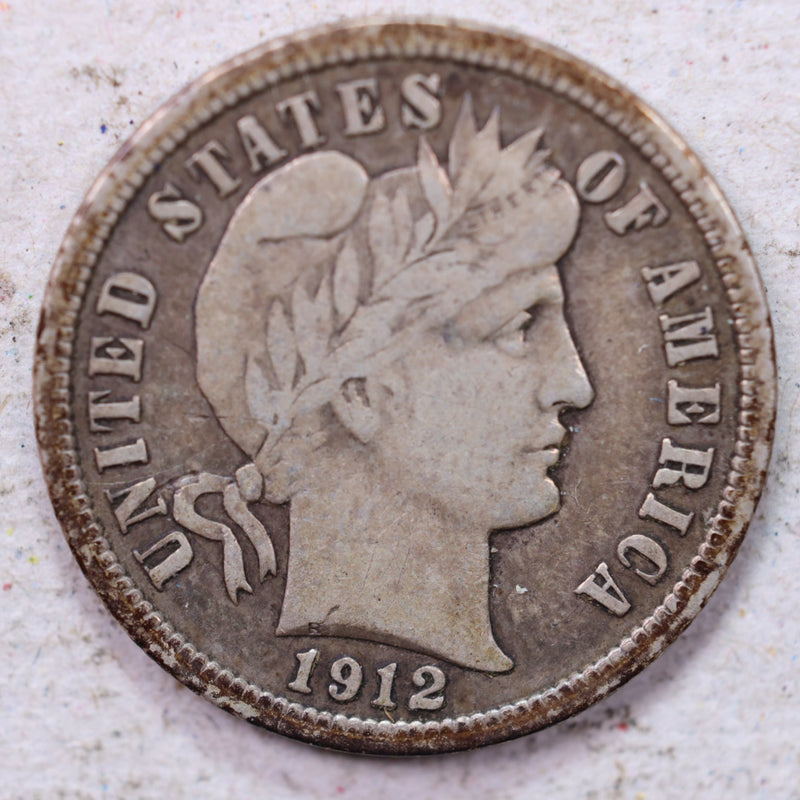 1912 Barber Silver Dime., Very Fine+., Circulated Coin., Store #1320