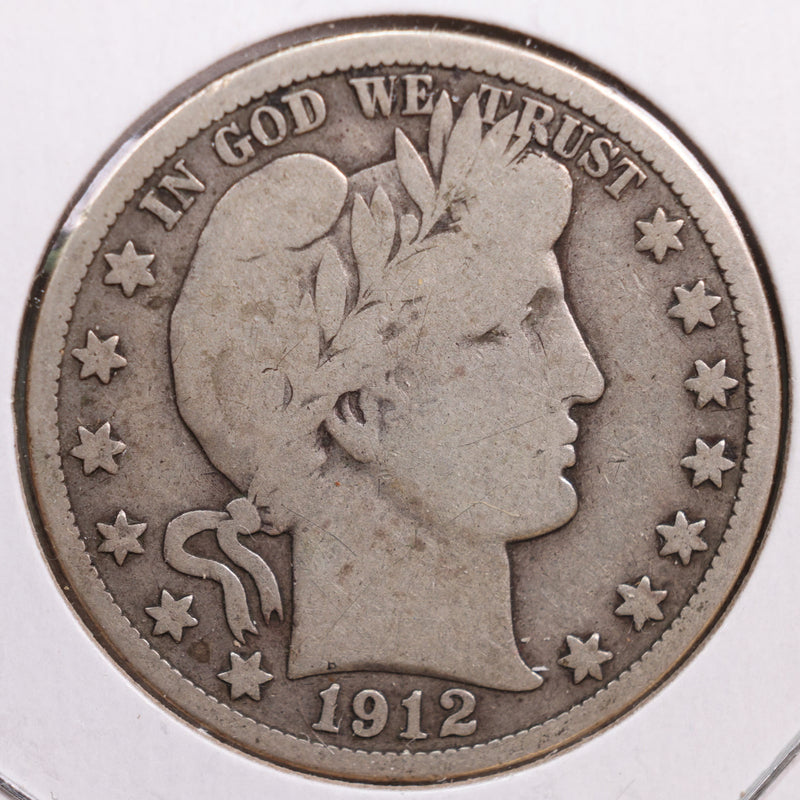 1912-S Barber Half Dollar, Very Good Circulated Coin, Store #HR0560
