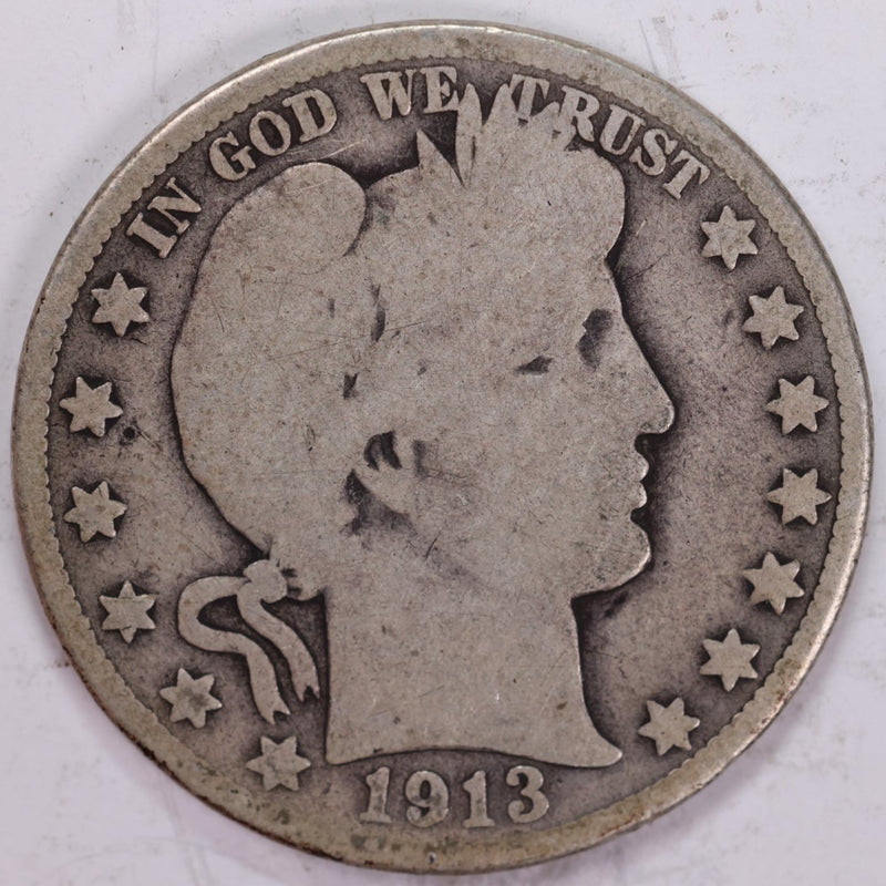 1913-D Barber Half Dollar, Very Good Circulated Coin, Store #H913D01