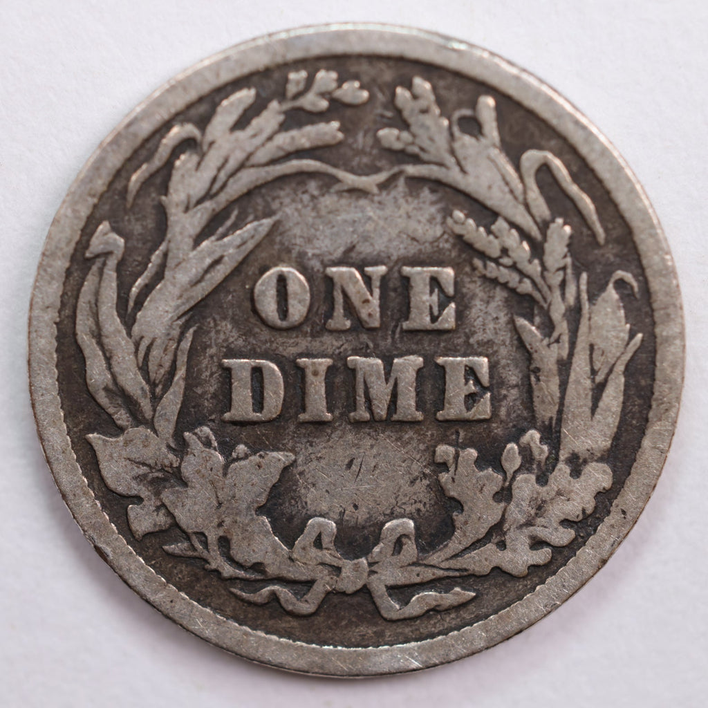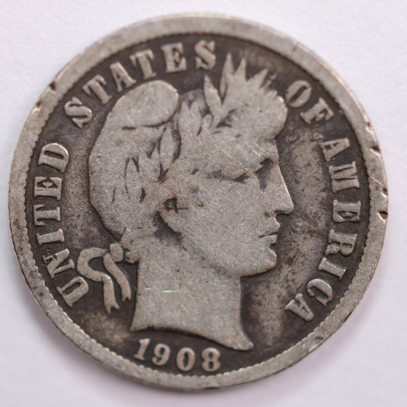 1908 Barber Silver Dime, Very Good Circulated Coin, Store #DE0525