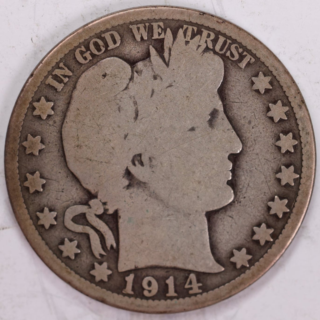 1914 Barber Half Dollar, Good Circulated Coin, Store #H914.01