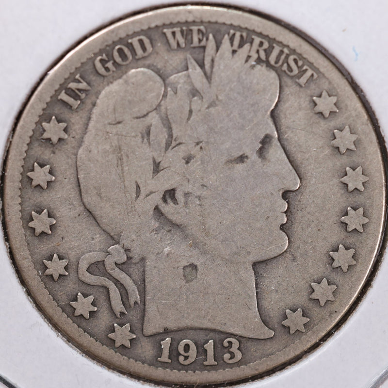 1913-S Barber Half Dollar, Good+ Circulated Coin, Store #H913S06
