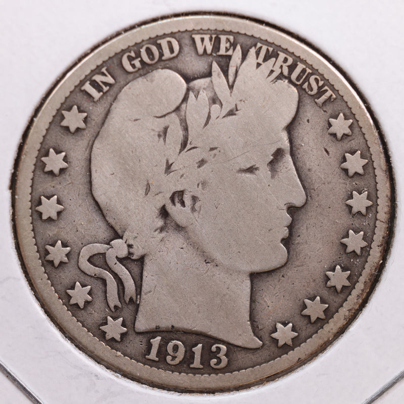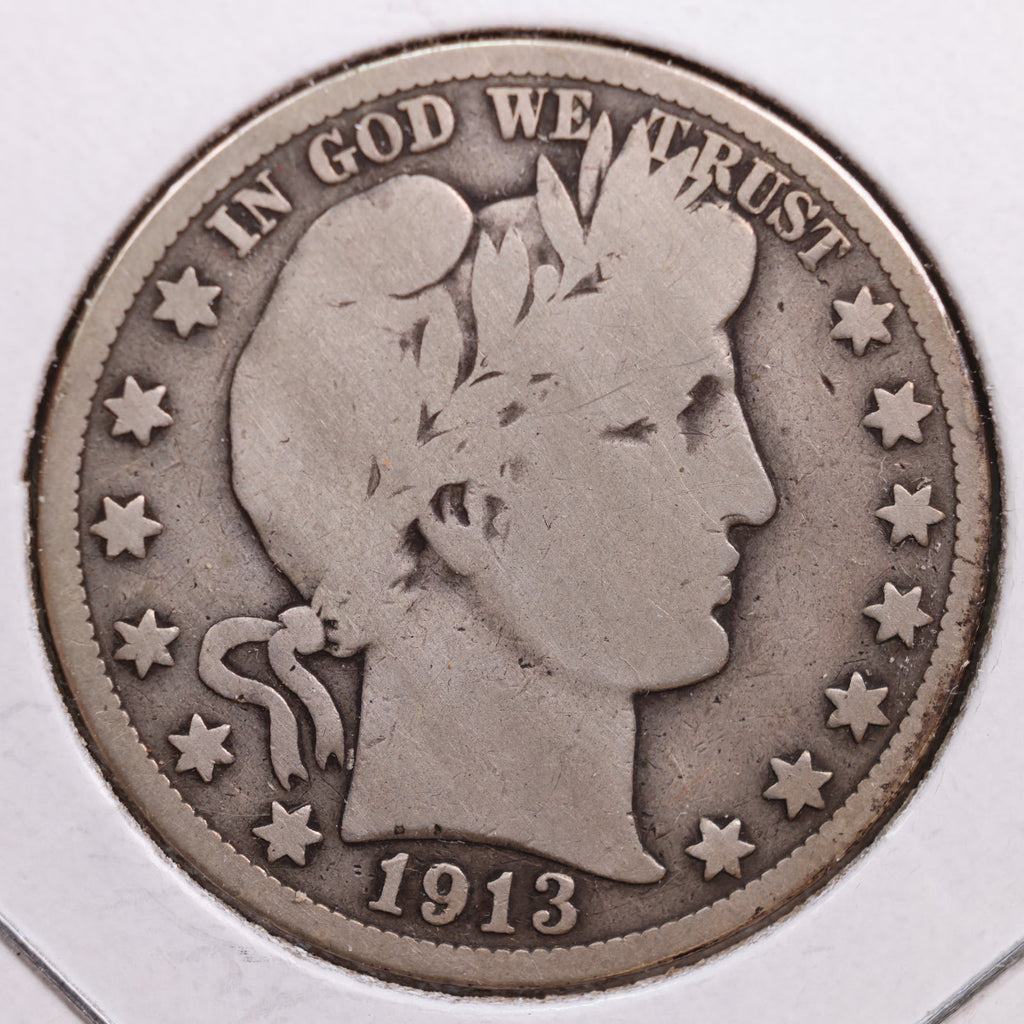 1913-S Barber Half Dollar, Good Circulated Coin, Store #HR0728