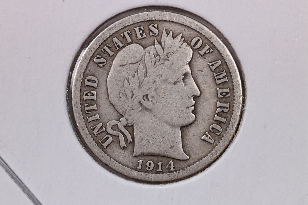 1914 10 Cent., Barber Silver Dime., Fine., Coin., Store #1686