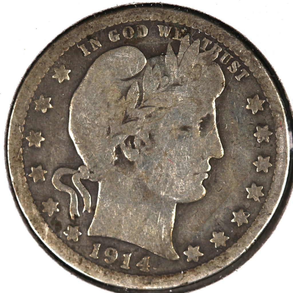1914 Barber Quarter, Good+ Circulated Coin, Store #07977