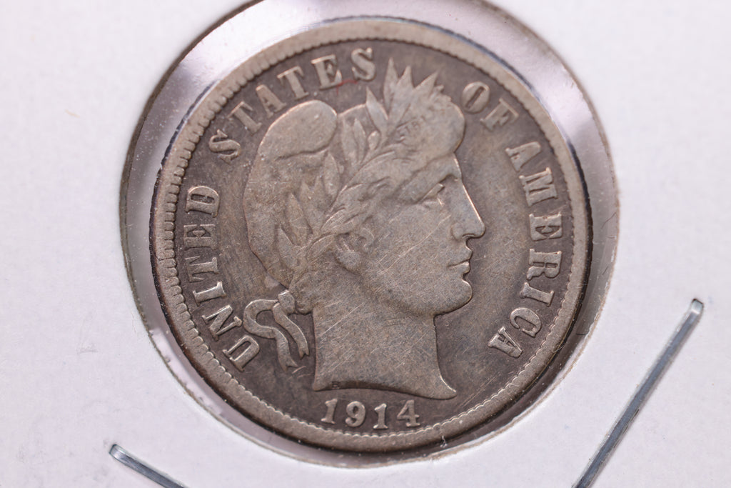 1914 Barber Silver Dime., V.F., Store Sale #19645