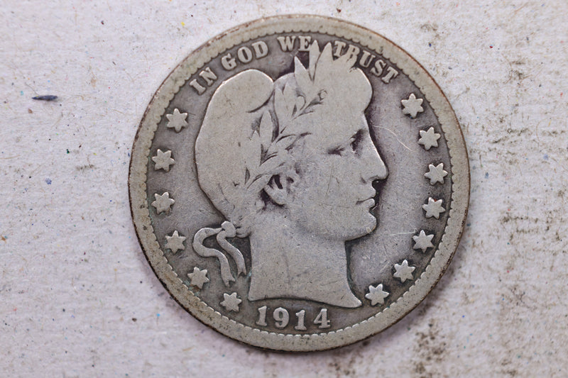 1914 Barber Silver Quarter., Very Good., Circulated Coin., Store #1457