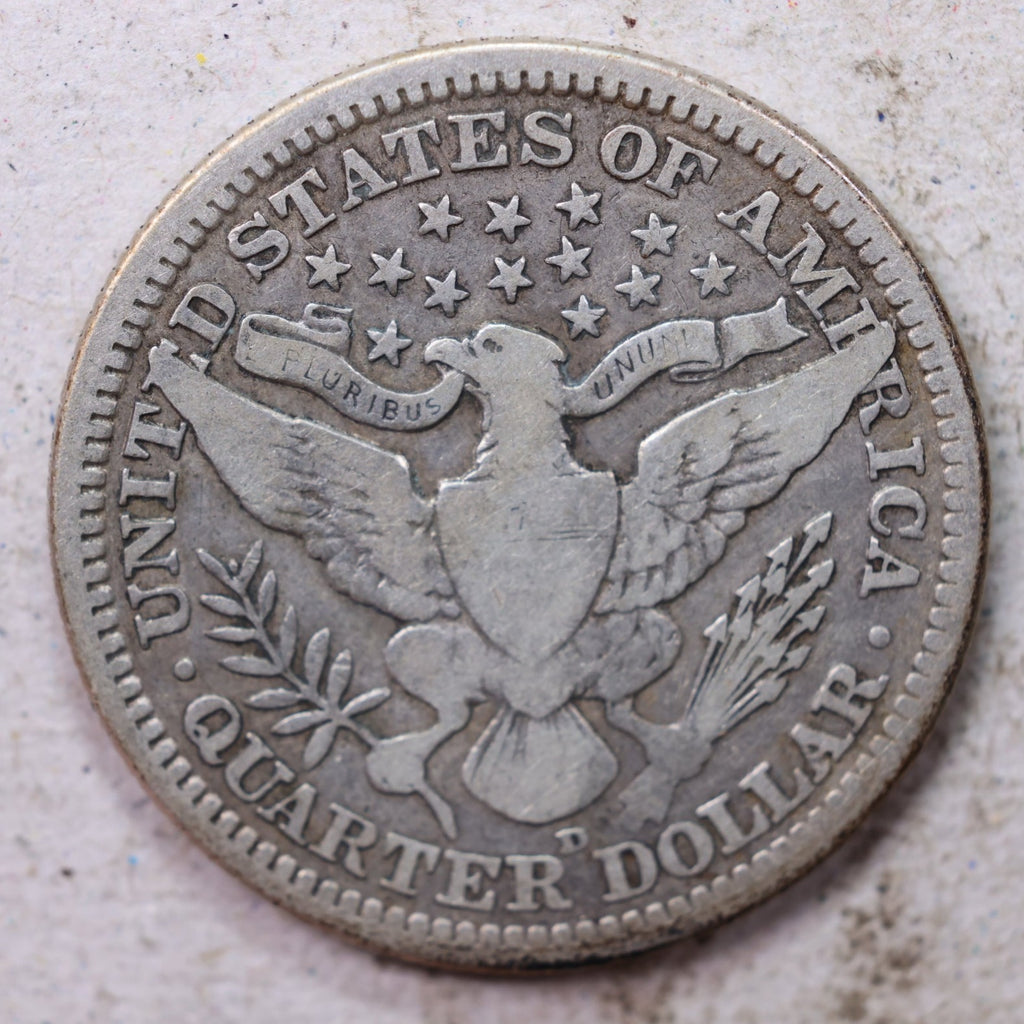 1914-D Barber Silver Quarter., Very Good., Circulated Coin., Store #1458