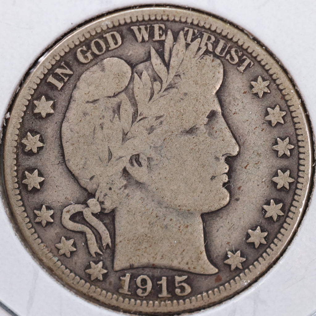 1915 Barber Half Dollar, Very Good Circulated Coin, Store #H915.07