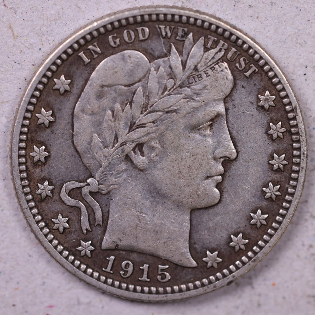 1915 Barber Silver Quarter., Extra Fine Circulated Coin., Store#1139