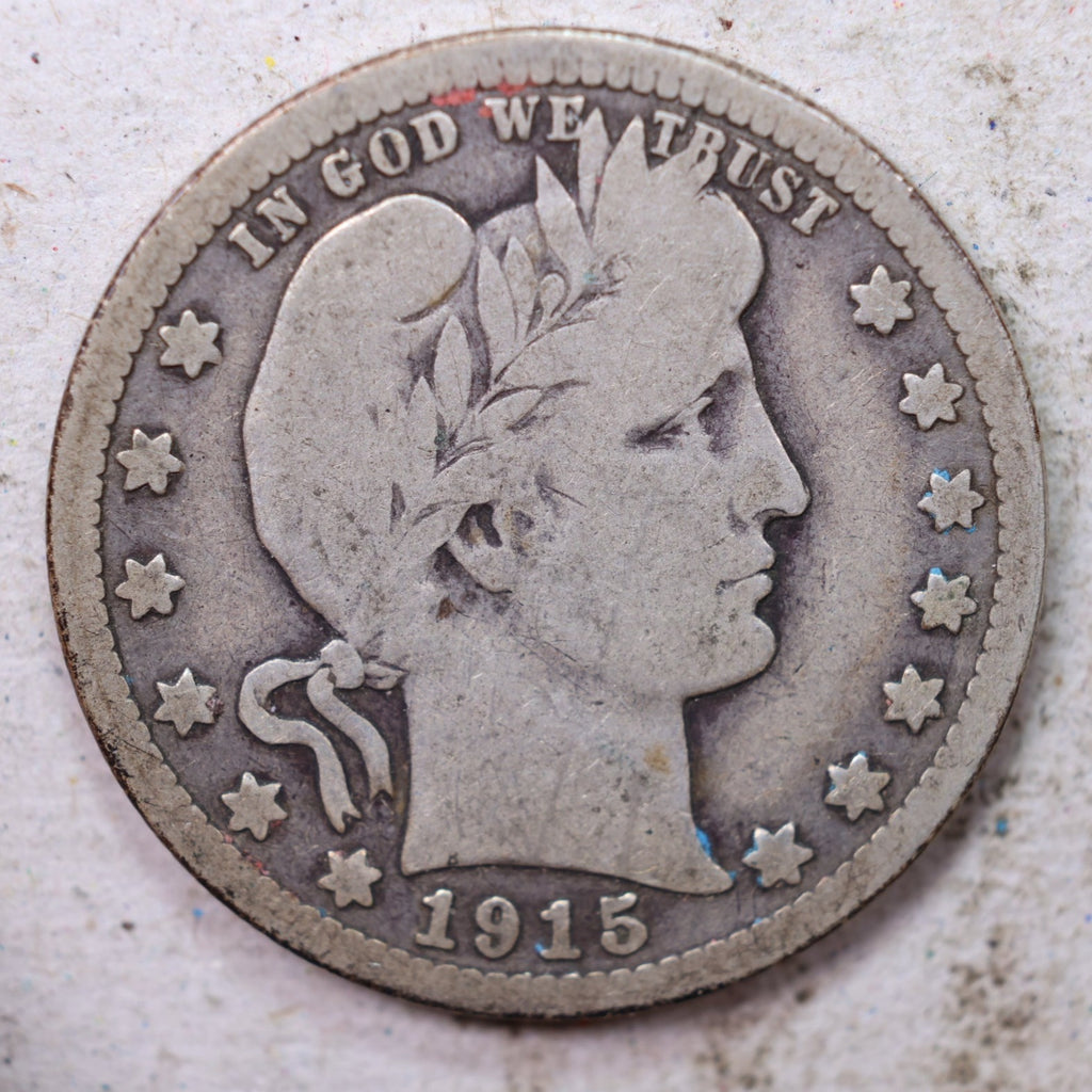 1915 Barber Silver Quarter., Very Good., Circulated Coin., Store #1462