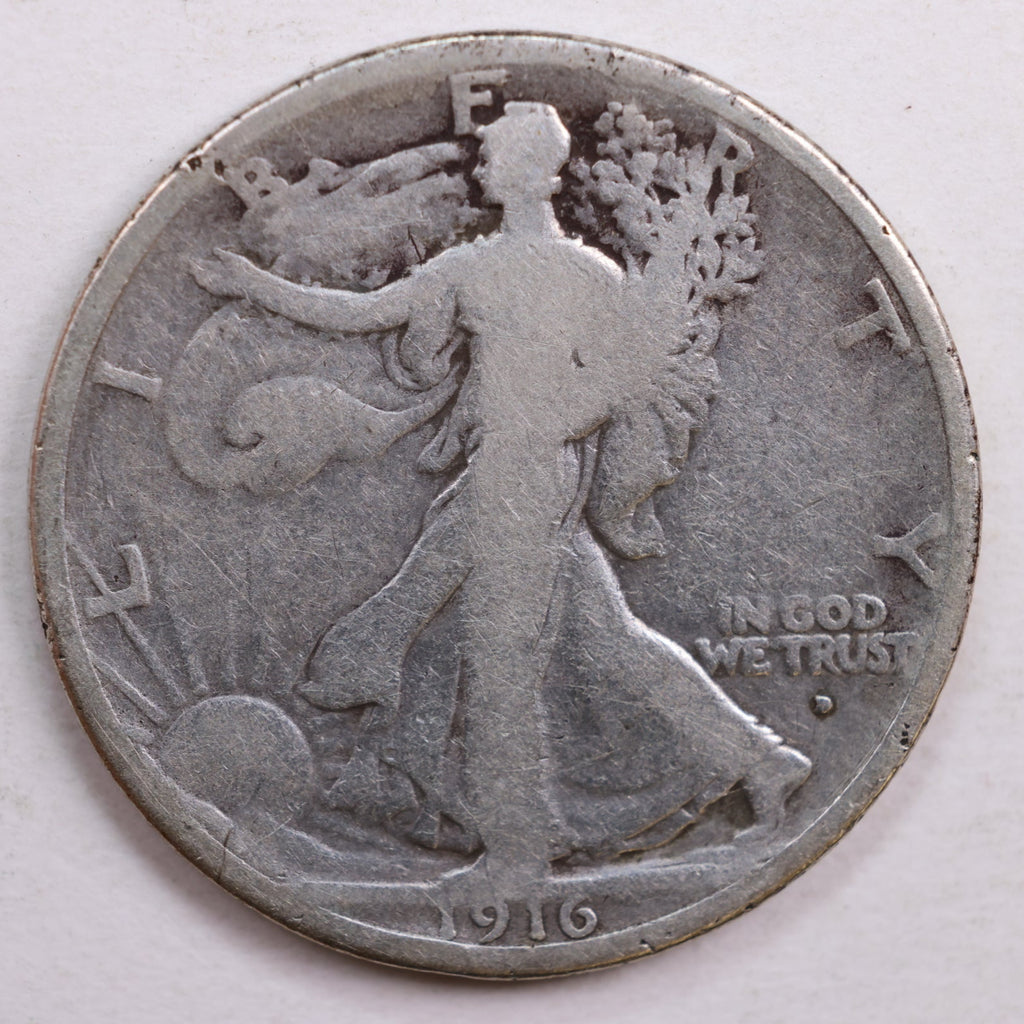 1916-D Walking Liberty Half Dollar, Very Good Circulated Coin, Store #HR0688