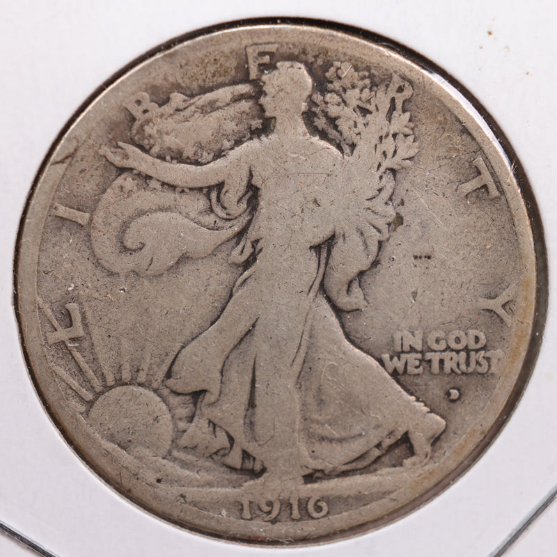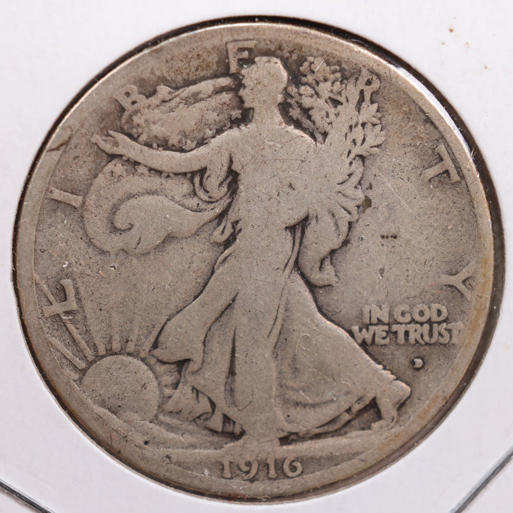 1916-D Walking Liberty Half Dollar, Very Good Circulated Coin, Store #HR0690
