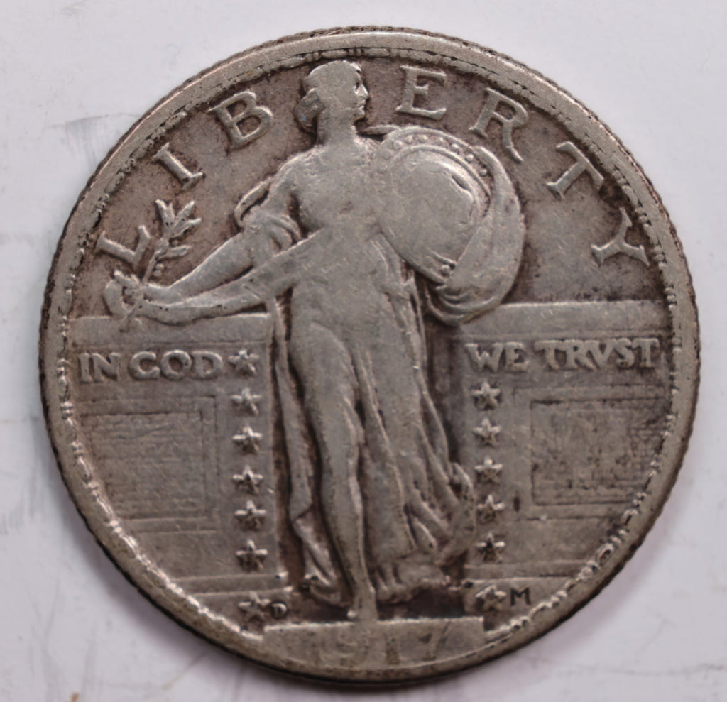 1917-D Standing Liberty Quarter., T-2, Very Fine Circulated Coin., Store #QR0284.
