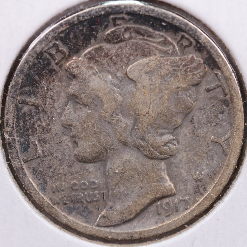1917 Mercury Silver Dime, Fine Circulated Coin, Store #DE0008