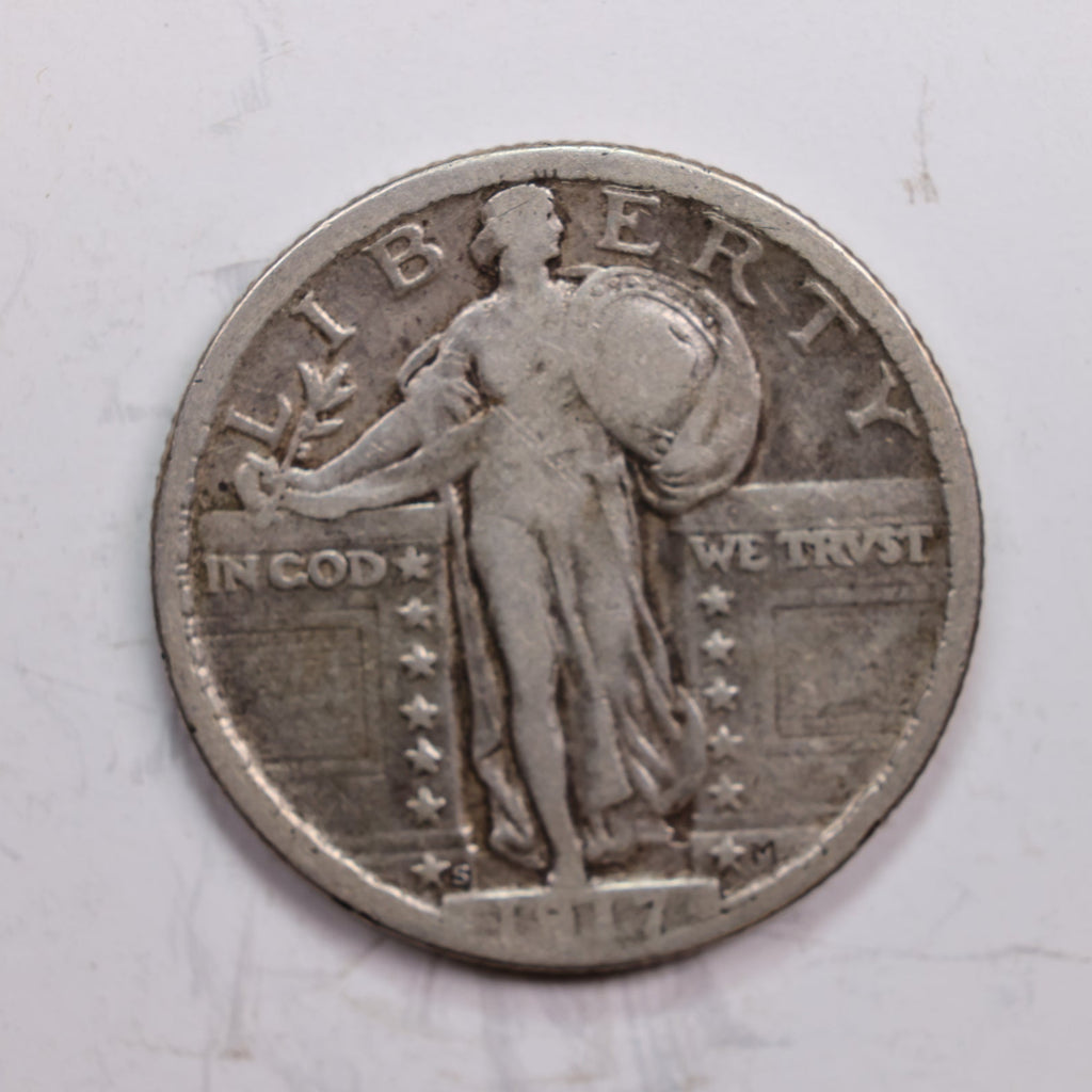 1917-S Standing Liberty Quarter., T-2, Very Fine Circulated Coin., Store #QR0285.