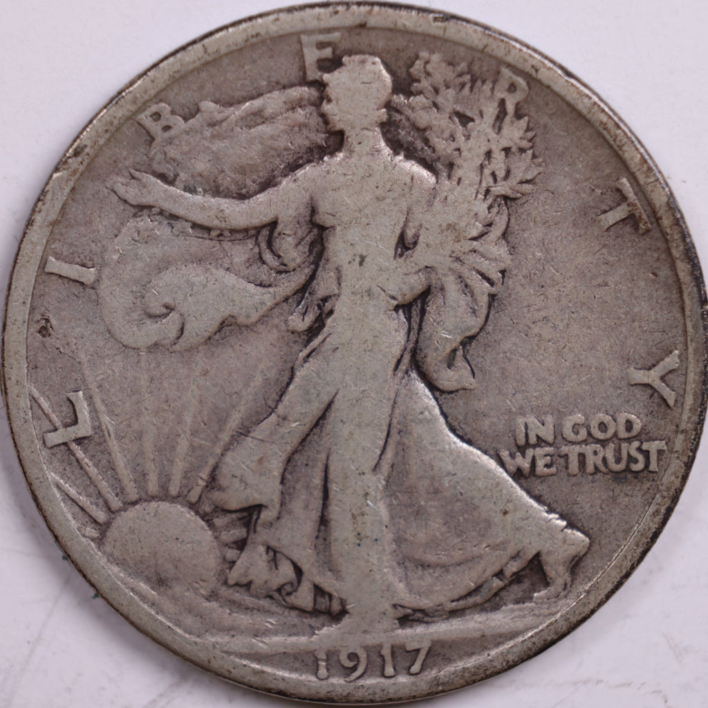1917-S Walking Liberty Half Dollar, Very Good Circulated Coin, Store #HR0495