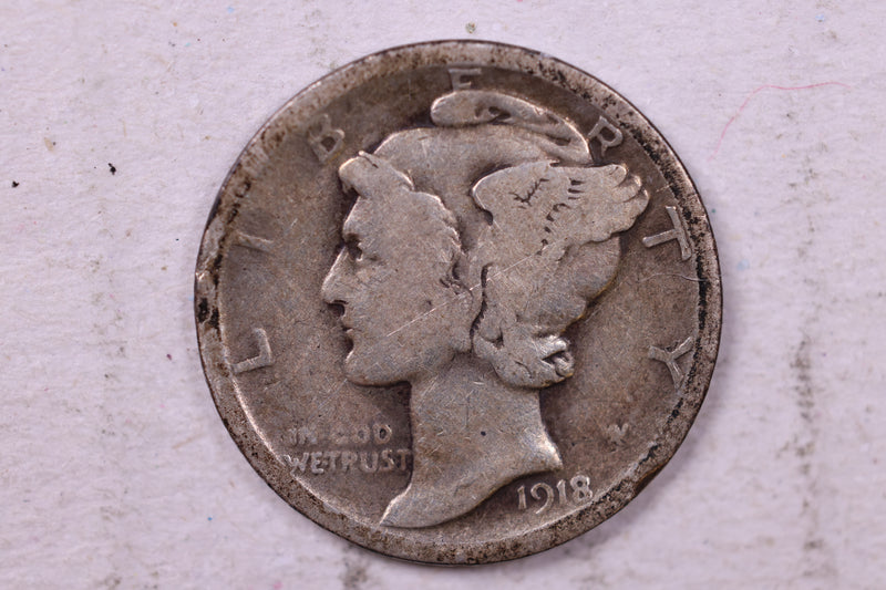 1918 Mercury Silver Dime., Very Good., Store #19734