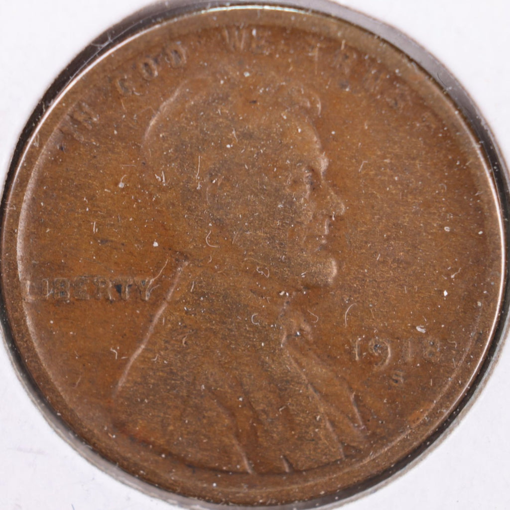1918-S Lincoln Wheat Cent, Very Fine Circulated Coin, Store #CT0288
