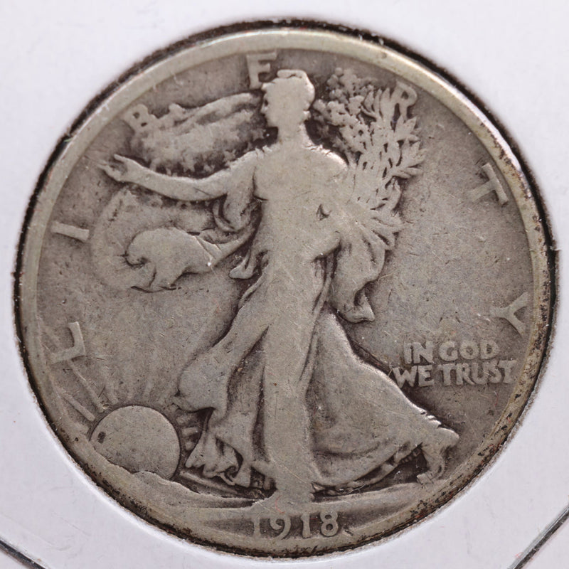 1918 Walking Liberty Half Dollar, Good Circulated Coin, Store #HR0657