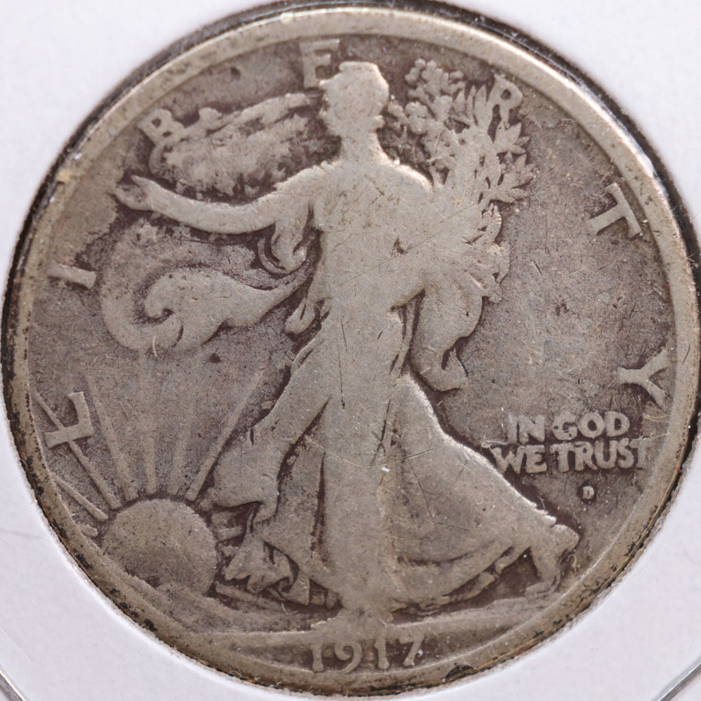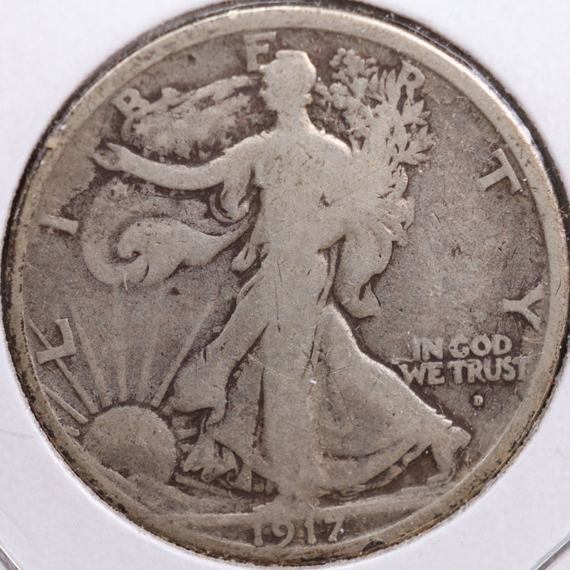 1917-D Walking Liberty Half Dollar, Good+ Circulated Coin, Store #HR0659