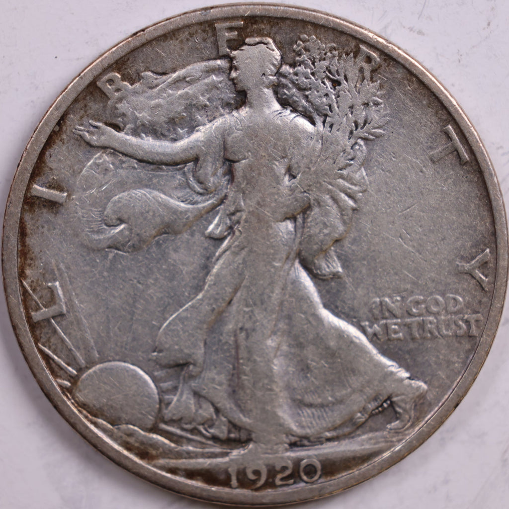 1920 Walking Liberty Half Dollar, Very Good Circulated Coin, Store #HR0498