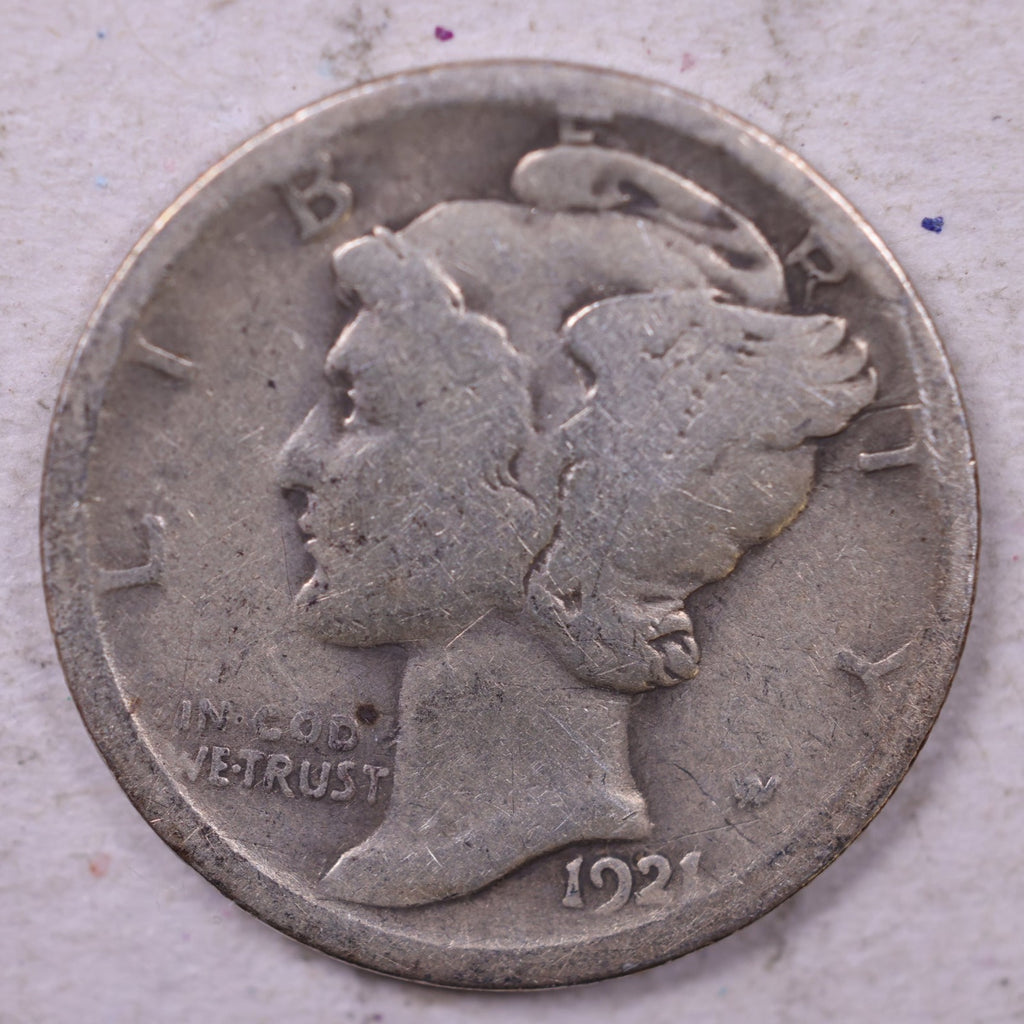1921-D Mercury Silver Dime., Very Good., Store #19829