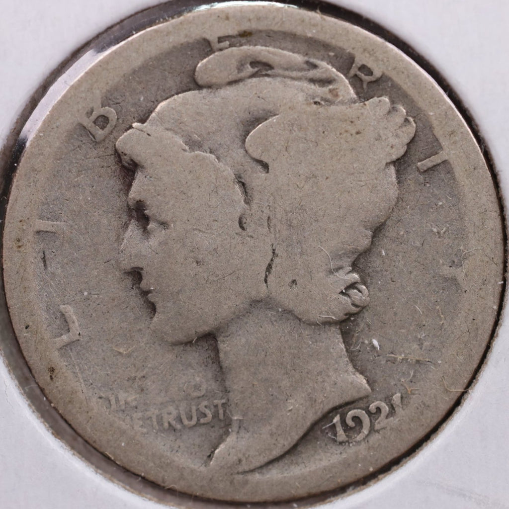 1921 Mercury Silver Dime, Good Circulated Coin, Store #DE0022
