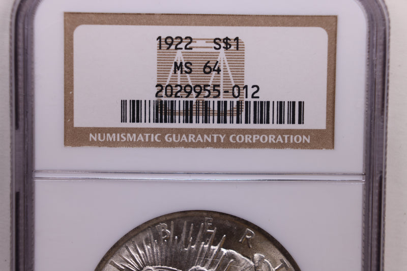 1922 Peace Silver Dollar., 'BLAST WHITE'., NGC MS-64., STORE #GDR042