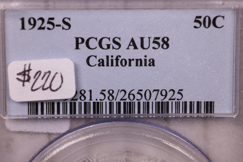 1925-S California Silver Half Dollar Commemorative., PCGS AU58., #GEC0015