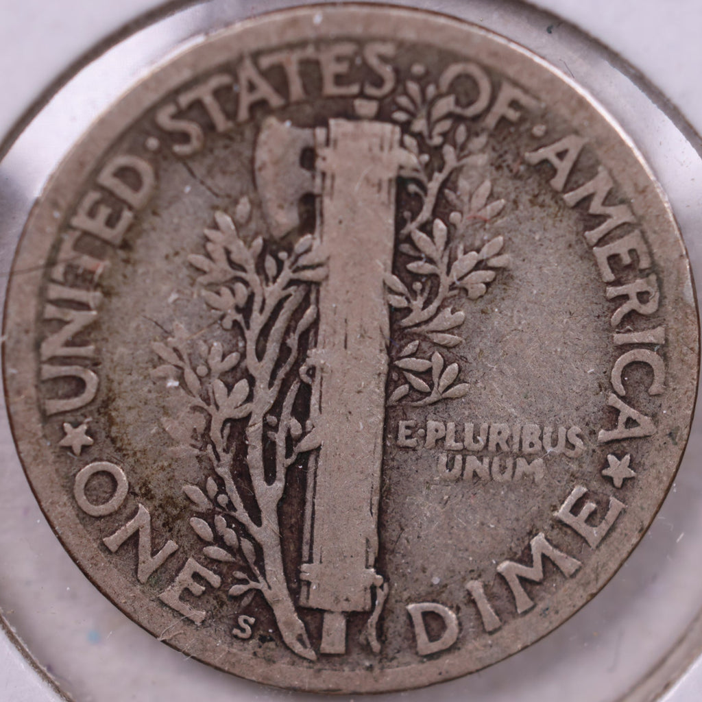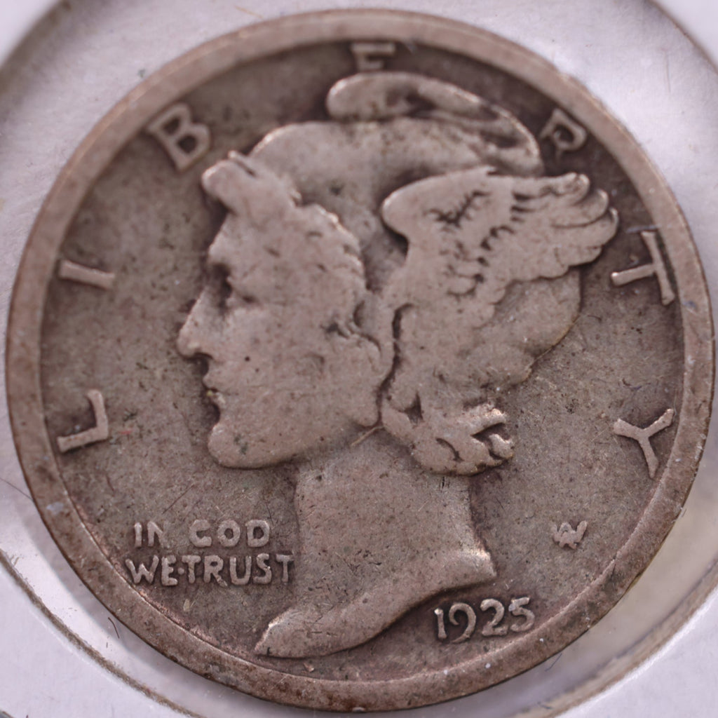 1925-S Mercury Silver Dime, Fine Circulated Coin, Store #DE666