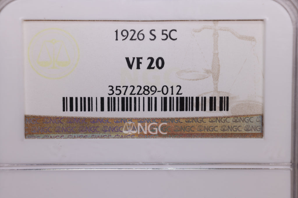 1926-S Buffalo Nickel., NGC VF-20., Strong Date., Store #GNL00006