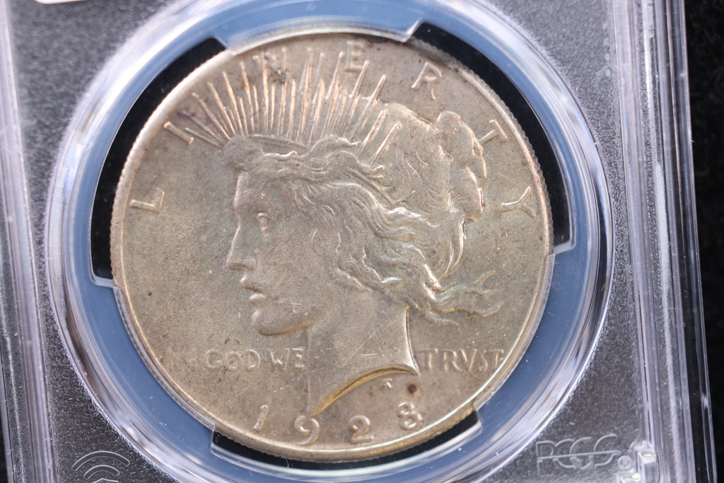 1928 Peace Silver Dollar., PCGS Graded AU-58. Store #30046