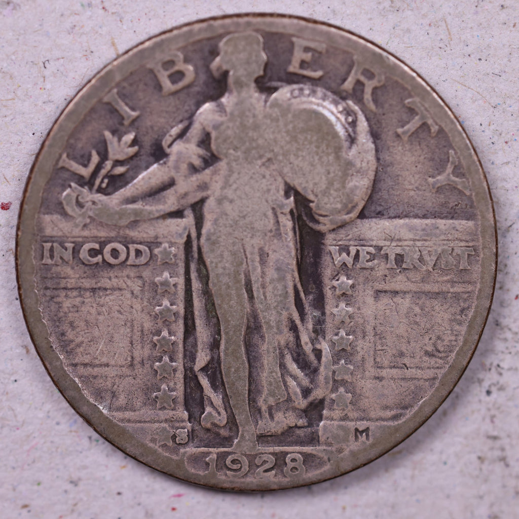 1928-S Standing Liberty Silver Quarter., Very Good Circulated Coin., Store#1141