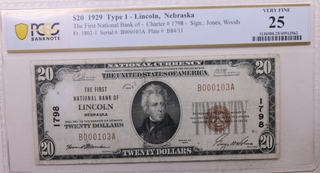 1929 $20, National., LINCOLN, Nebraska., #1798., PCGS VF-25., Store #SGNB005