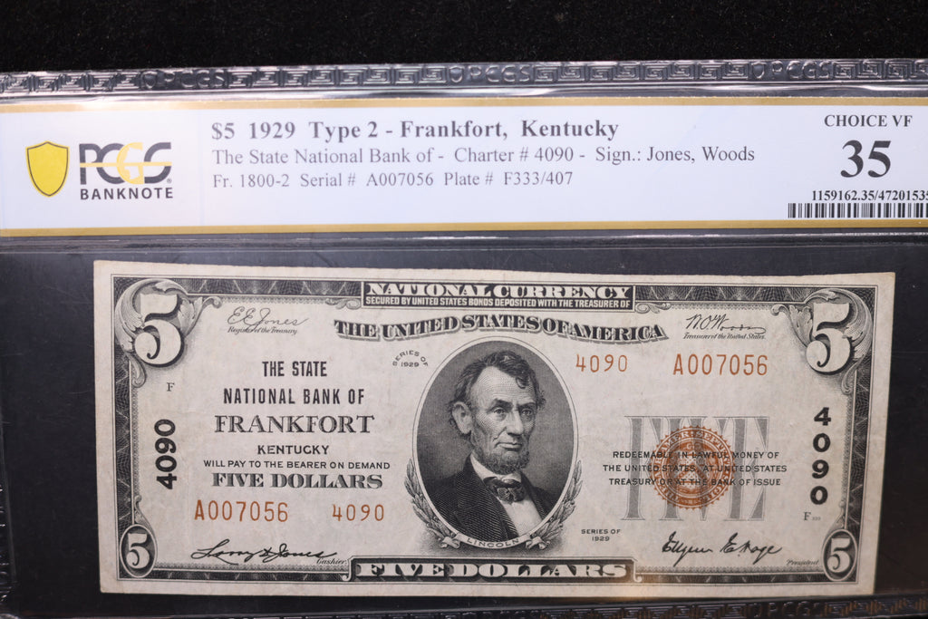 1929 $5, Frankfort, KY., National Currency Note., PCGS Graded AU-58. Store #SGBN006