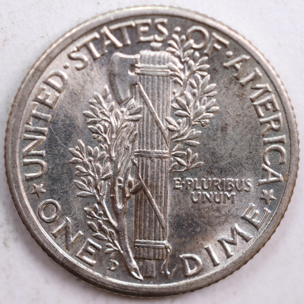 1941-D Mercury Silver Dime, Mint State Uncirculated Coin, Store #DE0409