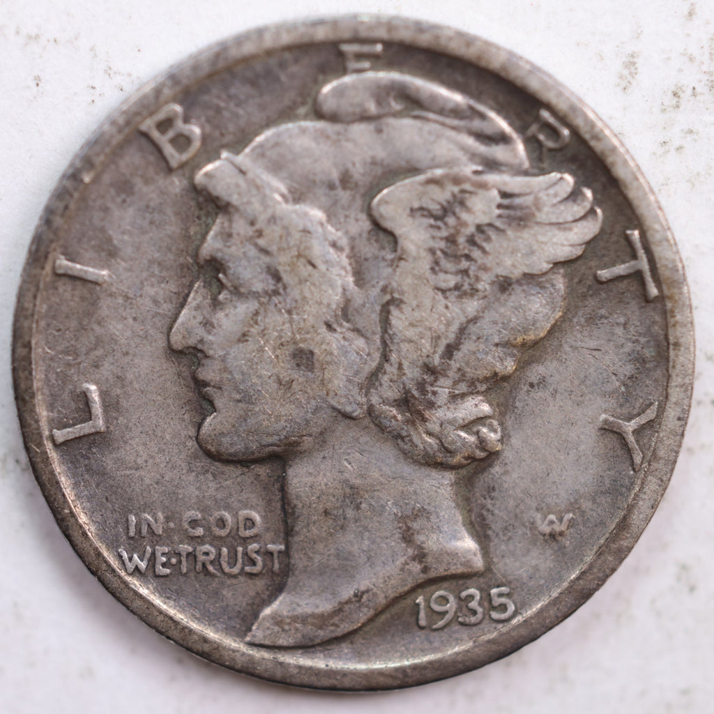 1935-S Mercury Silver Dime, Very Fine Circulated Coin, Store #DE0411