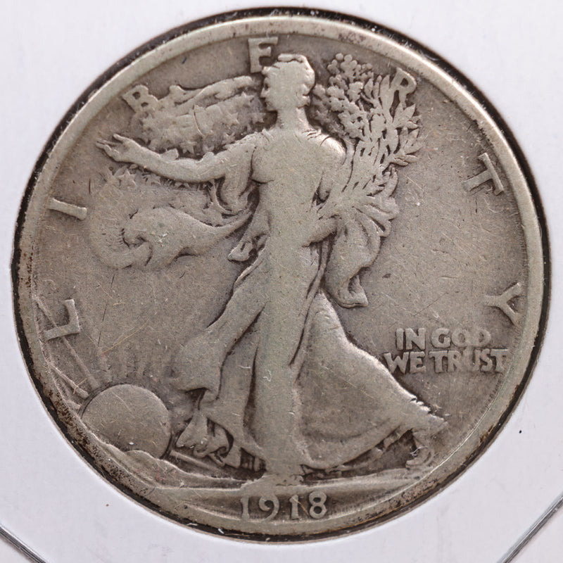 1918-S Walking Liberty Half Dollar, Very Good Circulated Coin, Store #HR0656
